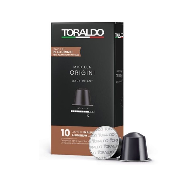 Капсули Toraldo Miscela Origini Alum Nespresso 10 бр. Origini представлява за нас съвършенството на кафето. Бленд от подбрани и фини качества на кафе, умело дозирано за отлично еспресо в чаша, изпечено според най-добрата италианска традиция. Сладко и ароматно, кремообразно и гладко, за да се наслаждавате на изисканото италианско кафе всеки ден.